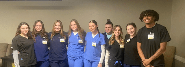 The MassHire Berkshire Workforce Board announces a new and innovative pilot training of nine Hoosac Valley High School students under the Healthcare/ Behavioral Health HUBs grant administered by Commonwealth Corporation. In partnership with Integritus Healthcare, the students have successfully completed a five-week hybrid Certified Nursing Assistant training. Hoosac Valley administration celebrated with the students on March 28th as they received their certificates of completion at North Adams Commons.